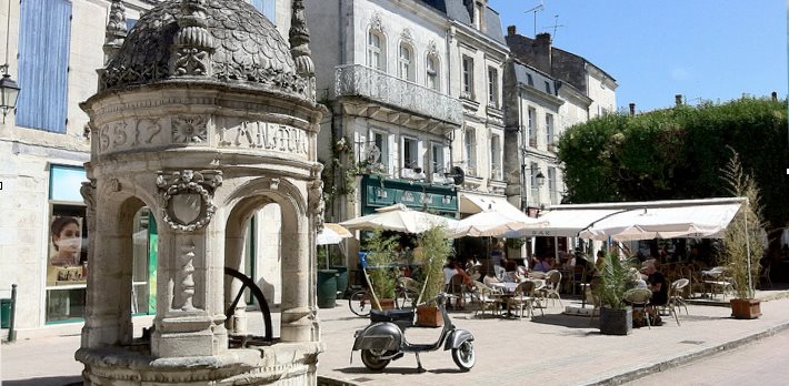 After ten minutes drive you will find Saint-Jean d'Angely which is now home to a vibrant and bustling town centre, with a twice-weekly market (on Saturdays and Wednesdays). There is also a swimming and fitness centre, Atlantys. The Centre of European Culture at Saint-Jean-d'Angély, created in 1989 as a joint initiative taken by the Minister of Culture, the town of Saint-Jean-d'Angély, the regional council of Poitou-Charentes and the council of Charente-Maritime, has hosted multinational sessions focused on European culture and citizenship that are dedicated to youngsters sixteen to nineteen years, coming from all European countries. Most striking as you approach the town from all directions is the Royal Abbey. Founded in the ninth century to house a relic of Saint John the Baptist, and rebuilt in the 14th, 17th and 18th centuries because of repeated destruction, then later abandoned, the Abbey is now a listed building. It remains the most remarkable piece of architecture of Saint-Jean-d'Angély, a town which has kept all its medieval charm. Situated on the pilgrim route that led to Santiago de Compostela the edifice still constitutes a major stopping-off point towards Santiago de Compostela. Since 1989, the Royal Abbey has housed the Centre of European Culture, which has breathed new life into the Abbey by restoring it as a historical and cultural site and as a place for the exchange of ideas. From 1989 to 1997, the restoration of the monastic buildings has been carried out according to the needs of the Centre of European Culture, with an emphasis placed on accommodation, catering, as well as rooms for conferences, reunions and workshops. The Centre has been at the forefront of the revitalization of the building, to such a point that today the Centre and the Abbey have been linked in the minds of the residents.